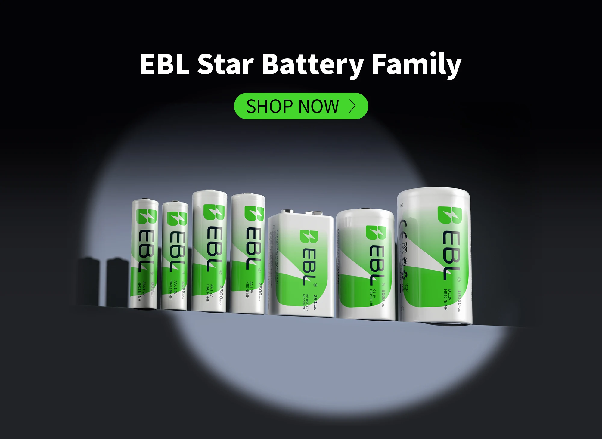 Ebl नई फास्ट चार्जिंग 1.2v प्रकार c यूएसबी टाइप सी यूएसबी n-mh मोबाइल या एक सार्वभौमिक 9v a स्मार्ट पोर्टेबल रिचार्जेबल बैटरी चार्जर